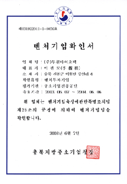 In cooperation with Chungbuk National University, Pharmacy University and Chungbuk University, the Company is devoted to research on various products and edible fattiness made of lower molecular protein collagen. By now, its highly-efficient research team has developed high quality products and feasible biological engineering technologies. It has registered the patent for MWS lower molecular protein collagen, which is now widely used in consumption industry as materials for cosmetics, beauty and plastics, in textile industry as the natural replacement for chemical silica gel to get rid of pollution problems, in other industries as the surface treatment additive for cell phones and automobiles, and in clinic industry as seam and repair film.