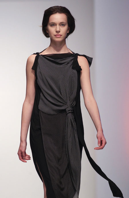 A model presents a creation by Belarussian designer Lena Tsokolenko during Belarus Fashion Week "Fall-Winter 2011-2012" in Minsk, April 14, 2011.(Xinhua/Reuters Photo)