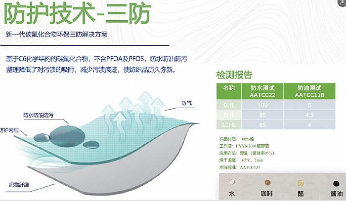 三防整理剂通过极大降低纤维表面能,赋予了纺织品抵御常见液体和污渍的能力,是现代纺织技术满足人们便捷、防护、耐用 需求的杰出代表。 从户外装备到日常服饰,其应用无处不在。
