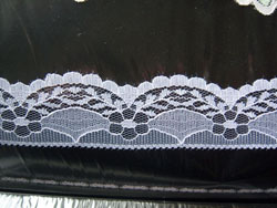ELASTIC LACE, 93%NYLON,7%SPANDEX. We produce and offer all kinds of Lace , Trimming, garment accessory as following: Raschel lace, jacquard lace, textronic lace, knitting fabric,stretch lace, rigid lace , nylon lace , spandex lace , wedding dress lace, more than 2000 patterns are available for buyers' choosing. Also buyers' patterns are acceptable for our production Do not hesitate to send us inquiry , we supply good quality with competitive price .
