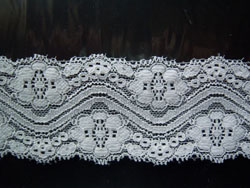 ELASTIC LACE, 93%NYLON,7%SPANDEX. We produce and offer all kinds of Lace , Trimming, garment accessory as following: Raschel lace, jacquard lace, textronic lace, knitting fabric,stretch lace, rigid lace , nylon lace , spandex lace , wedding dress lace, more than 2000 patterns are available for buyers' choosing. Also buyers' patterns are acceptable for our production Do not hesitate to send us inquiry , we supply good quality with competitive price .