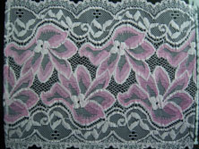 ELASTIC LACE, 93%NYLON,7%SPANDEX. We produce and offer all kinds of Lace , Trimming, garment accessory as following: Raschel lace, jacquard lace, textronic lace, knitting fabric,stretch lace, rigid lace , nylon lace , spandex lace , wedding dress lace, more than 2000 patterns are available for buyers' choosing. Also buyers' patterns are acceptable for our production Do not hesitate to send us inquiry , we supply good quality with competitive price .
